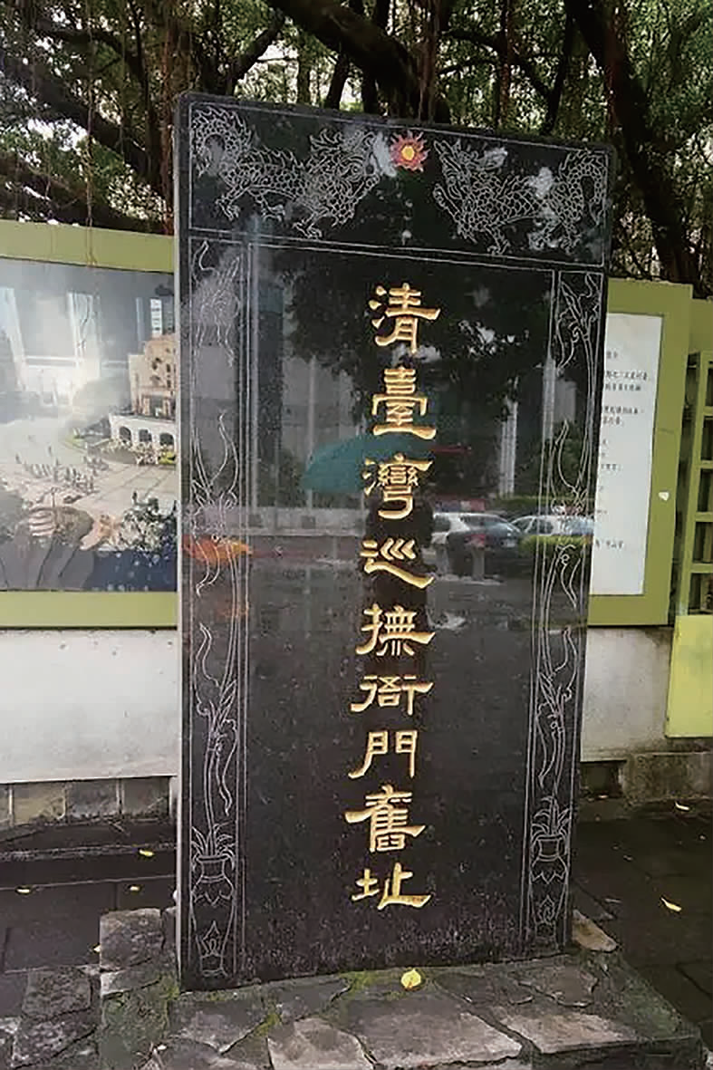 图(2):1885年中国正式设立台湾省,台湾近代化建设进入快车道。图为位于台北市中山堂畔的台湾巡抚衙门旧址碑。