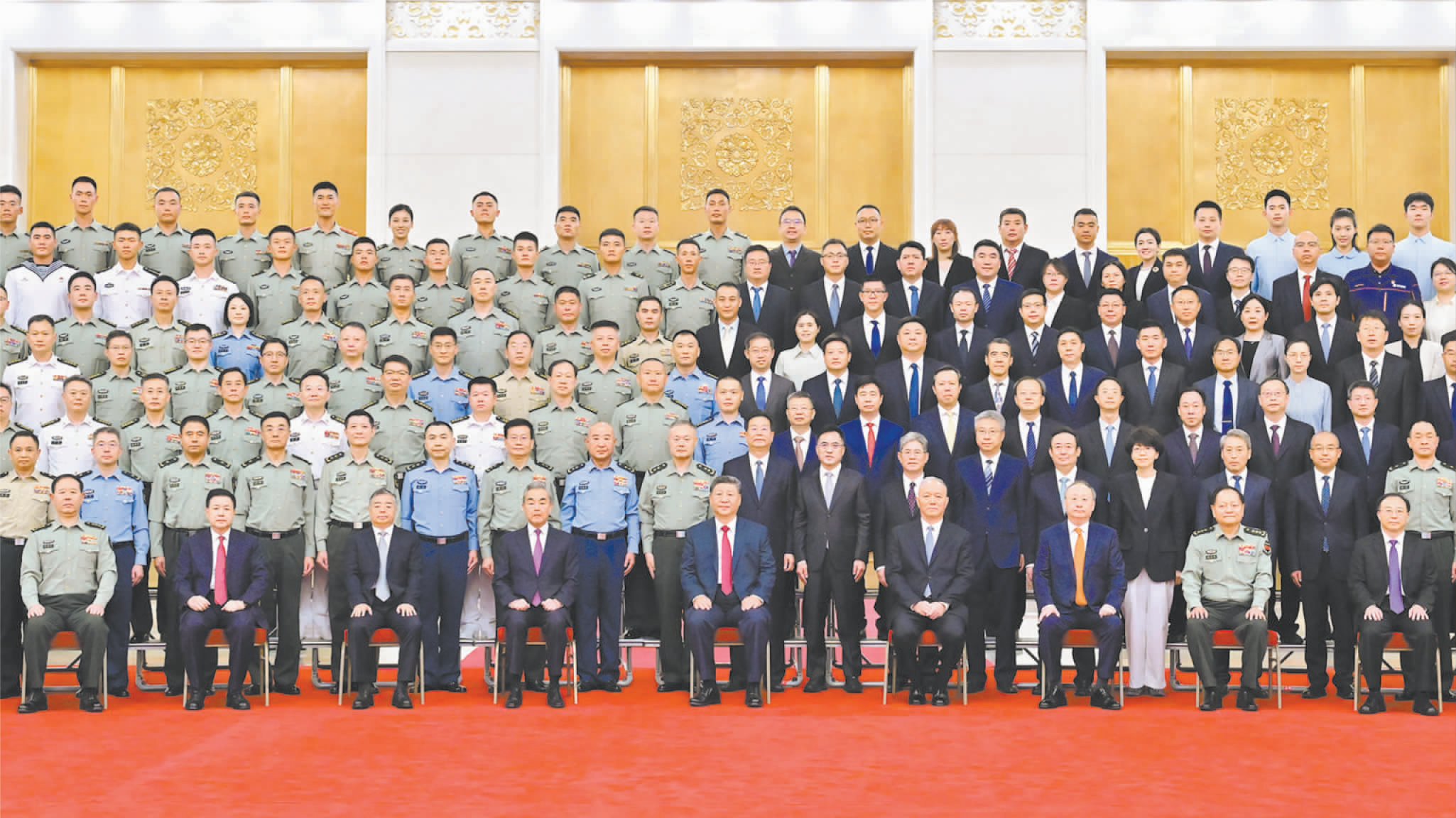 9月17日,党和国家领导人习近平、蔡奇等在北京人民大会堂接见中国人民抗日战争暨世界反法西斯战争胜利80周年纪念活动筹办工作各方面代表。(新华社记者 翟健岚 摄)