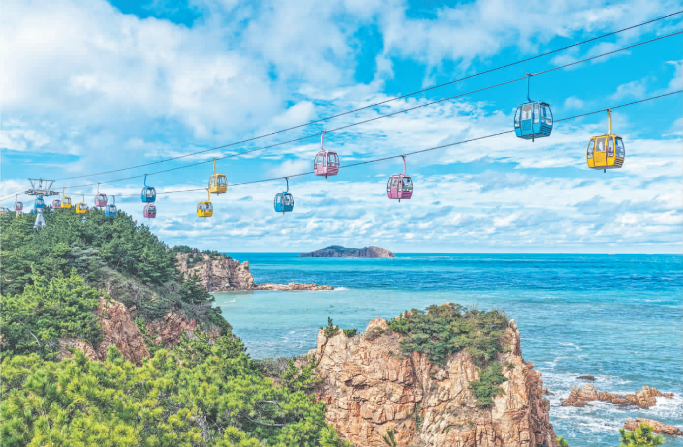 10月7日,在荣成市成山头风景区,游客乘坐缆车观景。 (新华社发)