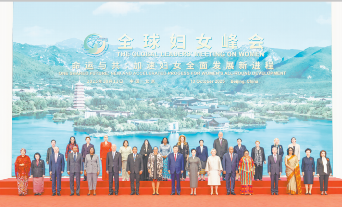 第三,共同构建保障妇女权益的治理格局。要完善制度和法律,让更多优质的健康和教育资源惠及所有妇女,努力让广大妇女更加全面公平地享有各项权利。营造包容和谐的社会环境,拓宽妇女参政议政渠道,支持妇女广泛参与国家和社会治理,使性别平等真正内化为全社会的文明共识和行为准则。
